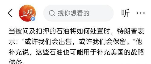 事情发生后,很多人都觉得不可思议,这都什么年代了,还有这种事?美国人自己还觉得挺有理。他们总统对着外面讲,这批油就是他们的“战利品”,怎么处置他们说了算。
