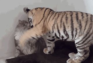 还有就是它们的尾巴习惯也很不一样,猫的尾巴基本都是向上翘的(可能和家猫被驯化了有关系),而老虎的尾巴是向下的,最多也就摆到水平位置。